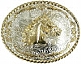ゴールドに輝くカウボーイの姿が印象的なデザインバックル!